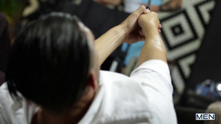 Tall and lean D.O. took quite the fall in his struggle with Pietro, and lucky for him, he survived to make it back home to his sexy, muscular husband, Jean Franko. The hairy stud is happy to have him back and celebrates their victory with a passionate fuck. Dark-haired D.O. starts by rimming his butt and enters his hole with his big cock before turning his own eager bottom around for some deep thrusting. - ''Telenovela Part 3'' #drillmyhole #men