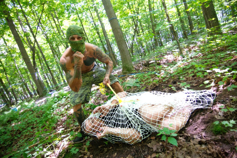 When the hulking hunter Bo Sinn spots Oliver Smith taking a casual stroll through the woods he'll stop at nothing to get the cute twink gagging on man's dick. Bo climbs a tree and throws a net down on the unsuspecting bottom then hurries down to give the cock hungry slut what they both know he wants. Oliver greedily takes Bo's dick down his throat, sucking as much of it as he can before the merciless top bends him over and shoves his enormous dick into Oliver's butt. Oliver loves every second of being caught in Bo's trap, moaning with ecstasy as his asshole gets used until Bo blows his huge load all over Oliver's face. - "Raw Bushmeat" #bromous #men