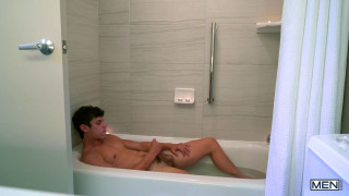 Hustling twink Kaleb Stryker arrives at the door of Scott DeMarco's hotel room to find a note with very explicit instructions from the client. Kaleb goes into the bath, gets into the tub and lets the rich man tell him exactly what to do as man watches from the next room. Scott watches the dark haired cutie touch and tease himself in the tub until he can't take it anymore. Scott collects Kaleb and brings man back to the bed where he devours his cock, blowing and toying with him. Kaleb bends over a chair and lets Scott rim his hole, getting it ready for a long and hard pounding. The two hard bodied hotties fuck all over the hotel room, grinding and groaning their way to two explosive cum shots that leave Kaleb cum-covered and content. - "Flesh Peddler Part 3" #str8togay #men