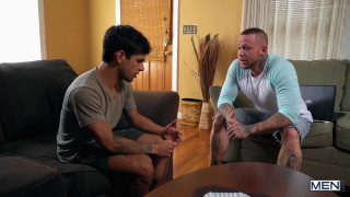 Muscular, good-looking Gage Unkut has been involved in a secret online relationship with slim cutie Ty Mitchell. He’s busy video chatting when his wife starts banging on the door demanding he open it up as Ty is demanding to know who the woman is. Gage lies and says it’s his sister before ending the video chat. Gage and his wife are in the living room when someone starts knocking on the door, and to Gage’s surprise it’s Ty! He confesses that he’s in fact married, but doesn’t want him to leave before finally giving him a taste of that sweet bottom he’s been longing for. Can he hide his secret affair from his wife long enough to bust a nut? - ''Tricky Tricks Part 1'' #str8togay #men