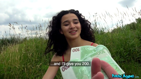 I saw Spanish hottie Mia Navarro lying on the grass on a towel near one of my favorite spots by the water. Mia did not speak Czech, but spoke a little English, enough to understand what I wanted when I offered her 100 euro to show me her boobs. Mia was cheeky, and said she would only show one boob for 100, but that boob was so great I knew I had to have more. I offered another 200 to see her slit and she was hesitant, so instead I offered 500 to suck my cock! Mia said she liked money, so she sucked my cock. We were interrupted by an onlooker, so we headed to a more private location among the trees. Mia continued giving me the blowjob, then turned around and spread her butt cheeks so I could fuck her doggystyle! She let me cum in her mouth and even played with it on her boobs for a bit! - "Tight Spanish pussy fucked outside" #publicagent #fakehub