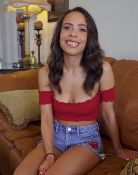 This girl Lana is here all the way from Alaska and she’s about to meet her biggest dick yet! I enter her to my friend Jmac and she takes the dick like she’s been doing it all her life. Her curly hair drives me crazy and that petite, tanned body is bomb. The best part? Little Lana begs for Jmac to unload all over her pretty, little face! - "Little Lana" #dontbreakme #mofos