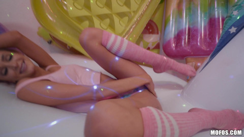 Is that squeaking the blow ups or Emma Hix's tight pussy? Watch the tiny Emma get filled up with Brad Newman's big cock as she jumps around in her inflatable room. This petite blonde charm shows us her magical place, then our lucky stud gets to stuff it with his great dick! This tiny chick sure can suck and fuck with the best of them so don't miss the gorgeous Emma Hix in activity! - "Inflatable Room" #dontbreakme #mofos