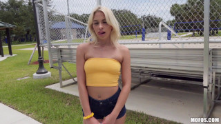 Here I was minding my own business, looking for some hot chicks to seduce with my big, fat wad of cash. I found this smoking sexy, tanned blondie sitting on the tribune. I offered her a modelling gig, but little did this chick know that she was in for a treat--I would give her some cash for a piece of that nice butt! Khloe was up for anything, so we found a secluded spot where I pounded that sweet, tight pussy of hers for some extra cash! - "Khloe's A Perfect Model" #mofos #publicpickups