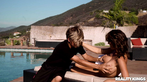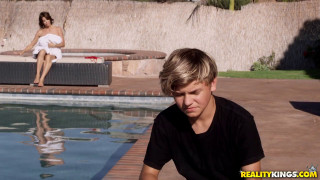 When Justin Deeper sees his girlfriend's mom, Alexis Fawx, in a sexy, red thong bikini, his imagination flashes to her twerking her butt, playing with her big, fake tits, and strumming her clit before the MILF even gets in the pool! After a quick dip, Alexis gets Justin's attention by asking him to help oil up her long legs, ass, and huge boobs, and then she finds him in the kitchen and tests out his pussy-eating abilities. This hot cougar can't wait to steal her daughter's boyfriend away to her bedroom, where she rides his dick and enjoys his youthful stamina and rock-hard dick as he pounds her cunt until she slurps his huge load in her mouth and lets it drip down her boobs! - "My Girlfriends Mom" #milfhunter #realitykings #alexisfawxmom