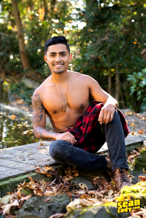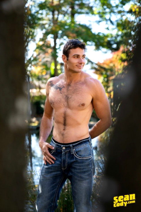 Jeb and Asher walk a secluded forest trail hand in hand, passionately kissing in the fall foliage and shucking off their shirts to pose among the trees. Surrounded by greenery, Jeb gives a teasing glimpse at his bush, but he waits to reveal his solid log until he and Asher are back at the studio, getting ready to warm up in a shower together. Asher undresses Jeb and licks and nuzzles his hard abs and his hard cock, and Jeb sucks Asher's cock before they step under the hot spray and Jeb fucks the tanned bottom doggystyle. "You ready? Oh Jesus," Jeb moans as he cums in Asher's mouth, and Asher replies "Oh yeah!" before the guys clean off and get ready for more. - ''Jeb & Asher: Bareback'' #seancody