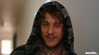 Short and cute Ryan Jacobs knocks on Bo Sinn's door, hoping for a signature on his speedbump petition, but what he gets is an eyeful of Bo's big dick when his robe falls open. Bo waves the squeaky-clean young man off, but Ryan is determined to get that signature, and that dick, so he sneaks inside. Bo puts Ryan up against the wall, asking which one he wants first, then pulls him into the living room and feeds Ryan his cock. Bo fucks the bottom on the couch, ripping up the petition and shoving the crumpled up paper in his mouth, then bends him over and pounds him doggystyle, enjoying how the petite guy's horny hole gapes. Bo makes Ryan cum as he penetrates him in piledriver, then signs his hole with a cumshot before signing his name to Ryan's clipboard. - ''Petite Petitioner'' #bromous #men.com