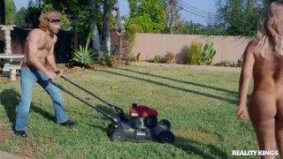 Wearing a colorful bikini that shows off her hot body, Bridgette B struts outside to take in some sun by the pool. Nobody's around, so why not take advantage and sunbathe in the nude? Her peace and quiet comes to an abrupt end when Michael Vegas revs up the lawnmower, having been hired by Bridgette's moron of a husband. Bridgette confronts him in nothing but her birthday suit, but Michael's having a hard time not staring at her big tits and gorgeous ass! Feeling horny, Bridgette works out a deal with Michael that'll leave them both feeling very happy, leading to some intense poolside sex! - ''Poolside Sex For The Horny Wife'' #rkprime #realitykings
