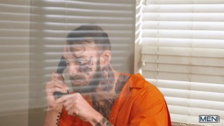 Officer Paul Wagner is supervising a visit between a prisoner and his husband, Ty Mitchell, but Ty has shown up to tell his soon-to-be ex that he wants a divorce. The criminal watches sadly from behind the glass as Ty begins kissing the sexy cop, then Paul takes out his huge cock, bends Ty over the desk, and fucks him doggystyle. The guys take turns sucking each other's dicks, and Paul picks Ty up before putting him on the desk and penetrating his hole in missionary.Ty rides Paul's nightstick like his own personal toy, stroking his cock as he takes every inch till he orgasms loudly, then takes a sticky facial from Officer Paul. - ''Precinct 69 Part 3'' #drillmyhole #men