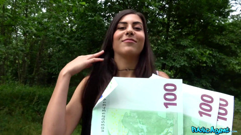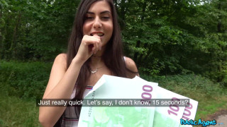 I couldn't help but notice Anya's slim, sexy body and braless perky tits while I was out for a walk. To my surprise, this cute brunette didn't speak any Czech but instead fluent English! I decided to try my line about finding her a modelling job, but she wasn't interested until I mentioned travel, because this Romanian babe is a real globe-trotter who loves to be as free as her tits! I really wanted to get a good look at those breasts, and for 300 Euro she pulled up her top and even let me touch them! When I offered her 400 Euro for a blowjob she led the way to a secluded spot in the woods where she was excited to get my dick in her pretty mouth! Anya seemed to get so horny sucking my cock that she bent over for a hot doggystyle fuck and she wanted to watch my cum paint her beautiful bum! - "Horny sexy tourist fucked in forest" #publicagent #fakehub