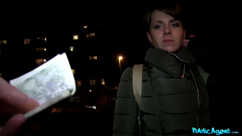 I don't usually cruise girls at night, but when I saw this short-haired babe get off the train, I just had to spring into action. Sasha said she had no experience modeling, but I made it clear that all I cared about was how good she looks in front of the camera. When she heard what a juicy offer I had on the table for a student who might want some pocket money, Sasha warmed up to the idea of showing me the goods. We went off to a quiet spot for her impromptu audition, and Sasha flashed her perfect round tits. Sasha drove a hard bargain, but with a thick wad of cash, I was able to tempt her into taking me balls deep in her tight pussy, and letting me film the whole thing! - "Short Hair Babe Fucked From Behind" #publicagent #fakehub