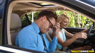 Petite teen Riley Star really sucks at driving. When her uptight instructor, Kyle Mason, tells her she isn’t road-ready, Riley tries to bribe her way into passing her exam by masturbating over her pretty pink panties. Mr. Mason turns her down, but Riley is so determined to pass her driving test and hungry for cock she pulls his pants off and sucks his dick in broad daylight. Mr. Mason might not think Riley is capable behind the wheel, but he solves she can handle a face-fucking. Riley wants her “license” so bad she spreads her asscheeks and lets Mr. Mason bend her over the car for a high-speed banging. She might not be able to drive a car, but she sure can ride a dick! Riley shows Mr. Mason all her moves, and when he’s done making a grade-a mess of her, he gives her a pass on her exam. Watch out for Riley! - "Drivers Ed Suxxx" #pure18 #realitykings