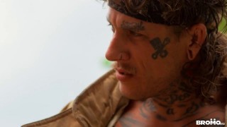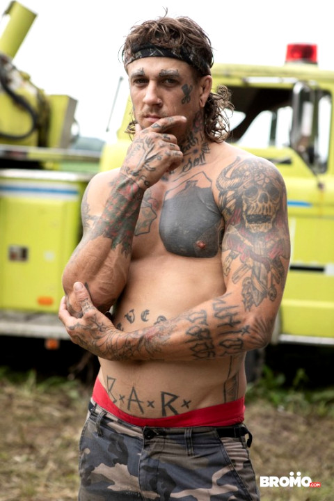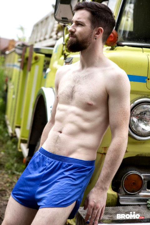 When Thyle Knoxx ignores Bo Sinn to flirt with a fireman washing his truck, Bo knows there's only one solution: tie up the firefighter and steal his uniform! Once Bo's wearing the iconic pants, with the fireman's jacket open to show off his muscular chest, Thyle rubs Bo's bulge and kisses down his hard abs, then pulls out that big cock and sucks it. Bo pushes Thyle up against the side of the truck to fuck him from behind, and the bottom rides him on the running board. Thyle gets on his hands and knees in the grass to get "fire drilled" in doggystyle position, then Bo fucks him nice and deep on a stack of tires before cumming all over his hole. - ''Pyromaniac'' #bromous #men