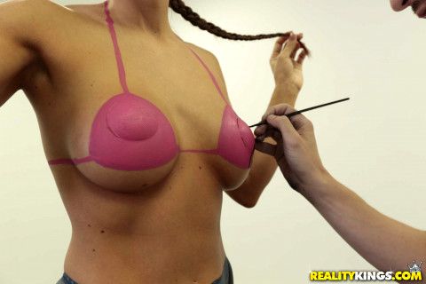 We asked sensual Abigail Mac if she was up for a little social experiment. Of course, the hot brunette is always up for anything, so we painted a pair of jeans and a bikini top on her smoking hot body. Then, we went for a walk by the beach to see if anyone would notice. How did people react when they realized her clothes were non-existent? We won’t spoil it for you, but you’ll wish you were there! After strolling down the street and making many heads turn, Abigail ventured in a park looking for a big hard dick to suck and fuck. Lucky for her, Charles Dera was there! He saw right through her paint illusion and slapped her perfect butt! Then, what happened next can only be described as lust at first sight as they fucked each other’s brains out right then and there on the park bench! - "Painted Booty" #rkprime #realitykings