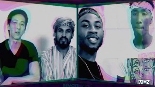 UK couple Tyler Wu and Jafar Azeezi have been keeping busy by working out at home or in the backyard, cuddling, and getting some reading done, while ebony Americans Jaiden Dinero and Pablostrokess are practicing their pole moves and having sneaky sex at the park! These lustful lovers set up a long-distance video call so they can get off together! Pablo bonds with sexy Arab Jafar over their shared love of toys before Jaiden and Pablo watch as Jafar penetrates gorgeous Asian Tyler's hole with a vibrator. Tyler and Jafar love watching Jaiden suck Pablo's cock, and Tyler gets a nice close-up of Jafar eating his ass before both tops fuck their bottoms doggystyle. Pablo gives Jaiden a creampie, then sits back to enjoy the show of Jafar and Tyler jacking their cocks as Jaiden sucks his balls. Once both the hot Brits have cum, it's Jaiden's turn to blow his load! - ''Remote Control: Episode 8'' #drillmyhole #men