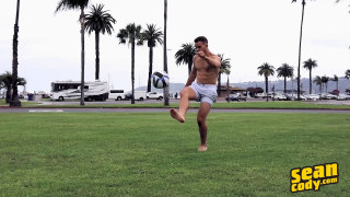After kicking around a soccer ball at the park, tall athletic Blake says he's "ready for some other contact sports." "You need a bottom for this huge cock?" asks handsome Jackson with a smile. Blake is also used to taking a dick in his muscular ass, but today he's decided to take a turn dishing it out. "I figure I always bottom, I may as well top once in a while, you know?" Jackson is excited and eager to take every inch of Blake's cut shaft, and man can't believe how good it feels as the tall hottie pounds his hole! After cumming in Blake's butt, Jackson says, "Next time it's my turn to bottom!" - "Blake & Jackson: Bareback" #seancody