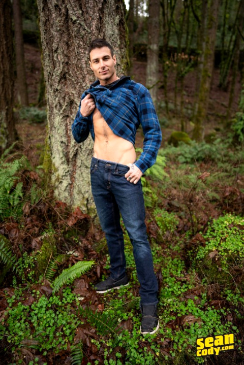 Tall hunk Jeb takes newbie Levi for a walk through the woods on a crisp day. The guys let their hands brush and before long they're kissing on a bench and cuddling by a mossy wall as Jeb asks Levi some very important questions, like, "Are you excited to get topped by me?" "Rock on, rock hard!" Levi replies. Both guys are definitely rock hard when they undress each other in the studio and take turns sucking each other's cocks before Jeb eases his big cock into Levi's hole. Jeb fucks Levi doggystyle and missionary, and these guys are already so in tune that they cum together! - ''Jeb & Levi: Bareback'' #seancody