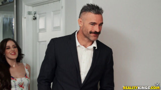 What would you do to make a sale? Wear your best suit? Bake some dang cookies? Fuck the potential buyers’ sexy AF (and super persistent) daughter when they’re just a few meters away? That last one actually probably isn’t a great idea, but in this script, Charles Dera, helpless to Aubree Valentine’s advances, does just that. And can you blame him? What death could say no to Aubree Valentine? In that cute skirt, those natural curves, that devious smile... - "Open House For A Slut" #sneakysex #realitykings