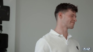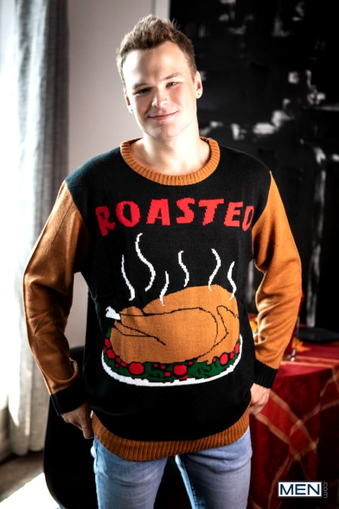Throuple Finn Harding, Brent North, and Alex Montenegro are trying to host the best Thanksgiving dinner ever, until it turns out their oven is broken! While Alex races to repair the appliance, Finn is enticed by the sight of his man's ass to fuck him doggystyle on the kitchen floor! Brent hears his boyfriends getting it on and watches as Finn puts Alex on a kitchen cart and fucks him missionary, then calls them to the table where he's waiting, naked and ready to get filled! Alex penetrates Brent's hole as Finn fucks his mouth, then the guys switch spots, making sure this horny bottom is well and truly stuffed. Alex trusses Brent's wrists as they double team him "turkey style." Alex cums all over Brent's face, and Finn finishes with a creampie. - ''Stuffed For The Guests Part 1'' #drillmyhole #men