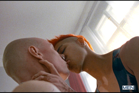For true kinksters only, follow shaven-headed submissive Roughkicks on his journey into subspace. The obedient sub gives himself fully over to handsome Dom Commander Ares to have his cock and balls kicked and stepped on, his body strapped into a tight latex straitjacket, and more. Commander Ares mixes pleasure with pain for his devoted sub as he combines breathplay, sensation play, and hot wax with playful kisses, restraints, and a lubed-up latex handjob. Everyone gets to subspace differently... what route will you take? - ''Subspace'' #drillmyhole #men