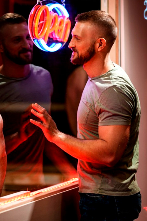 Curious Paul Wagner sidles up to The Cock Stop to see what's on offer, and performer Dante Colle seduces him through the window, enticing him inside. The guys start kissing and Paul gets his hands all over Dante's hot body, then lies down on the bed as Dante kisses up his thigh before stroking and sucking his cock. Paul rubs Dante's bulge, then gets on his knees to suck him before Dante takes him from behind against the mirrored wall. The bottom gets on the bed on all fours to take that dick doggystyle, then stares up at Dante as the top pounds him in missionary. Paul orgasms as he rides that thick cock, and Dante pulls out to cum. - ''The Cock Stop'' #drillmyhole #men