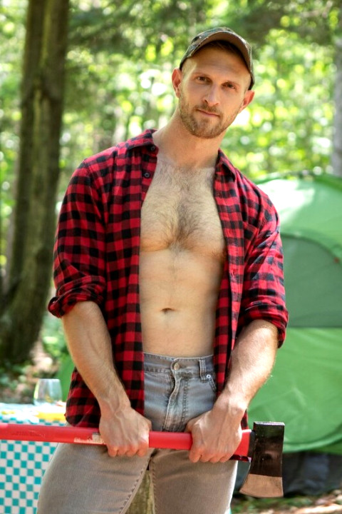 Olivier Robert is about to finally meet his boyfriend's parents on a camping trip, but he didn't expect to get wood when he met his man's dad, Paul Walker. Paul makes a strong impression with a butt squeeze, then Olivier follows the DILF as he goes to chop some logs. Paul notices the red-haired bottom stroking his dick through the trees and gives him a lesson in axe-swinging, then in ass-pounding. He fucks the bottom doggystyle and piledriver, then Olivier climbs up on the top's cock and rides him on a stump. Olivier cums as he gets drilled in missionary, then takes a forest facial. - ''The DILF In The Woods'' #drillmyhole #men