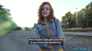 I was out walking one afternoon when I came across this stunning redhead named Cherry Candle. Cherry had missed her last train home, and she told me she didn’t have enough money for a taxi. Feeling generous, I offered Cherry some euros if she showed me her sexy body. Seeing Cherry’s thong-clad booty and perky, pierced nipples was making me horny, so I gave the flame-haired beauty more cash in exchange for sexual favours. We found a secluded spot nearby, and Cherry got down on her knees to suck me off before bending over and taking a doggystyle pounding! Afterwards, I banged the tattooed babe in missionary position, and then we had an intense side fuck on the floor. Cherry’s tight pussy felt so good that it was soon time to cum, and I got her to jerk me off until I spilled my load all over her incredible tits! #publicagent