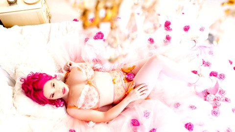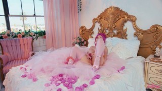 You don't have to guess at the favorite color of your February Twistys Treat of the Month. Let Lily Lou heat up your Valentine's Day with her hot pink hair and sizzling curves. Lily gets ready in her pink room with her blowdryer, then invites you to watch her make a video after dark as she plays in a ball pit. Then join Lily on a plush bed surrounded by rose petals as she slips out of her luxe lingerie and uses a hot pink vibrator on her clit, fucking herself with a bright pink dildo until she cums... and she won't stop at just one! #twistys