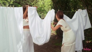 Twisty's Treat of the Month, the radiant Jenna Foxx, is hanging laundry on the line with stunning Jill Kassidy helping out. These girls have chores to do, but it's hard to get anything done when you're around your crush! They decide to take a short snack break - but it's not as innocent as you might imagine. They taste grapes, and each other's mouths - and it's pretty obvious which they like better. Sure, there's a lot of laundry to get through, but how can you expect these cuties to get anything done when all they want to do is each other? - ''TOTM - Hung To Dry'' #twistys
