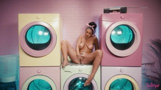 With her vintage sensibilities and classic star power, your August Twistys Treat of the Month, Queenie Sateen, is ready to put on the performance of a lifetime. In her pink leather outfit and long gloves, Queenie steps out of an antique car and delivers a tempting tease in true showgirl style. Next, pretty and natural, Queenie lets her long hair down as she sings into a vintage microphone in a cute jean bikini. Finally, the curvy retro goddess sits on the washer at the laundromat, and the vibrations tempt her to strip down, playing with her big natural tits and fingering her pussy! #twistys