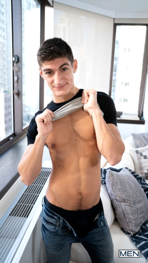When Aiden Ward hears his roommate, Ty Mitchell, vocally completing a round of kegels, the two start getting heated over who's the better bottom. Ty proposes that they solve this with a little healthy competition, but when they try sucking and fucking some dildos, their bottoming skills are evenly matched. So Ty brings out the secret weapon: a double-ended dildo for a little bussy tug-of-war! The guys resort to some cheating, but in the end Ty's tight hole is victorious. The gracious winner gives Aiden a consolation prize of a blowjob, and Aiden rims him before experiencing Ty's tight ass for himself in doggystyle. The hotties lie back on the couch as Aiden spoons Ty, then Ty uses Aiden's cock, riding him reverse. Aiden fucks Ty's winning hole till the bottom cums, and he pulls out to give Ty a facial. Next time will be a top-off! - ''Tug-Off War'' #drillmyhole #men