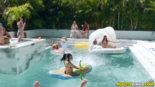 It’s Spring Break and Robby Echo is throwing a pool party, Reality Kings-style! The pool is filled with the sexy chicks who are all ready to shake their butts and flash their boobs to make this Spring Break party the most memorable it can be! Of course, we’re there to catch all the action! Things get hot very fast and bikinis come off! While Robby is busy sampling the perky boobs and tight booties on display, we spot Alex Blake and Kara Lee making out in a corner. Of course, we share this vital information with the host who decides to get in on the action! The two horny beauties team up to suck Robby’s dick and they even let us watch! Then, they take turns fucking him as the party continues in the background! I don’t know about you, but that’s what I call a fantastic pool party! You’re gonna wish you were there! - "Spring Break Beach House Party 2" #rkprime #realitykings