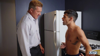 Very different houses, very different dads. Who will win? Ty Mitchell is a rebellious punk from the wrong side of the tracks and man's moving in with rich zaddy Matthew Figata, who vows to make Ty obey his rules. Matthew freaks out when he finds Ty drinking milk straight from the jug and spilling it all over the floor, so he rips off the naughty twink's shirt and makes him clean it up. Ty wants Matthew to teach him a lesson harder, so the sexy silver fox wraps man's belt around Ty's neck and makes him suck his cock. "My house, my hole" is the new rule, and Matthew eats Ty's to prove it, then fucks him doggystyle. The hot zaddy pounds Ty till he cums, then pulls out and paints Ty's butt with his jizz! - "Dad Swap Part 1: Bareback" #drillmyhole #men