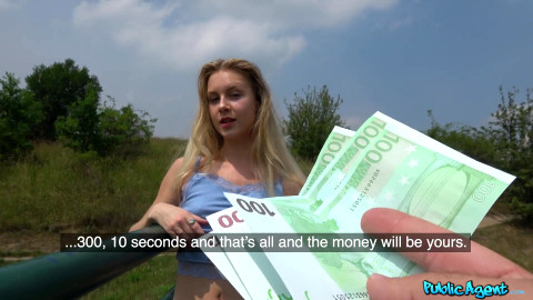 I was wandering near the local lake when I saw Alecia Fox walking along. Alecia was a pretty blonde who spoke English, and was on vacation in Prague by way of Moscow. She had come with friends, but was alone at the lake, so I asked her if she wanted to earn some money. 100 euro wasn't enough to convince her to show me her boobs, but I think it's because she wanted to tease me. Finally, after I upped the price to 300, she agreed. She had such beautiful boobs! For 1000 in total, she agreed to suck my cock. We went off into the forest, and she slowly took down her shorts. She had a beautiful ass! She even shook it on my cock while I fucked her doggystyle, and it was so hot that I came on her big ass! - "Horny blondes tight body fucked" #publicagent #fakehub