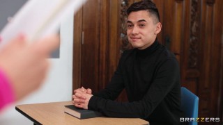 Here at The Cougar College, we train only the finest young men and women in the delightful art of power dynamic deviancy. From aspiring feline prowlers to brash young prey looking for an experienced woman to take charge, Cherie DeVille is here to train the brightest minds and deepest throats in the classic art of seduction. With her today are two cougar cadets - the gorgeous Kylie Rocket and devious Juan Loco - looking to benefit and learn from her wealth of experience and skills, keeping meticulous notes on how to engage, entice, and envelop a partner. Though, I don’t think this young pair was quite ready for such a direct and, uh, hands-on experience… One with drooling tongues, pounding cocks, and more than enough things to take home and study! - ''Welcome To Cougar College'' #pornstarslikeitbig #brazzers