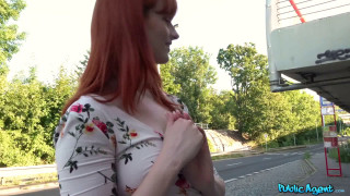 I saw redheaded American Alex Harper on the side of the road and she looked lost, so I approached to offer some help. Alex told me the airport had lost her luggage, so she didn't have her passport or phone, and she didn't know how to get to her hotel. I let her use my phone and she told me she was staying at the Intercontinental, which was on the other side of Prague. I offered Alex some money if she would show me her dream tits, and she flashed me on the spot. She was not shy! I told her my cock was hard, and she asked to touch it. When she felt the size of my dick, she wanted to suck it, so we went off to a private spot so she could give me a blowjob. My dick made her horny, and she asked me to stick it in her slit, then rode me reverse cowgirl. After some standing doggystyle sex, Alex had cum a few times, so she dropped to her knees and wanked me off until I came everywhere! - "Dirty hot American redhead beauty" #publicagent #fakehub