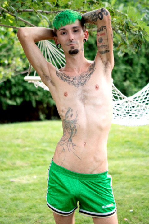 Bo Sinn sneaks through the hedge to spy on Charly Willinski as he's relaxing in his hammock. The tattooed twink feels like he's being watched, but he can't see anyone... until Bo's cock pops up through the hammock! He eagerly reaches for that big dick and sucks it, then rides Bo reverse, and Bo turns Charly on his side to fuck him in spoon. Charly lets the top take a turn in the hammock as Bo pounds him doggystyle! The guys fuck in missionary on the grass till the bottom cums, and Bo gives Charly a creampie. - ''Wreaking Hammock'' #bromous #men